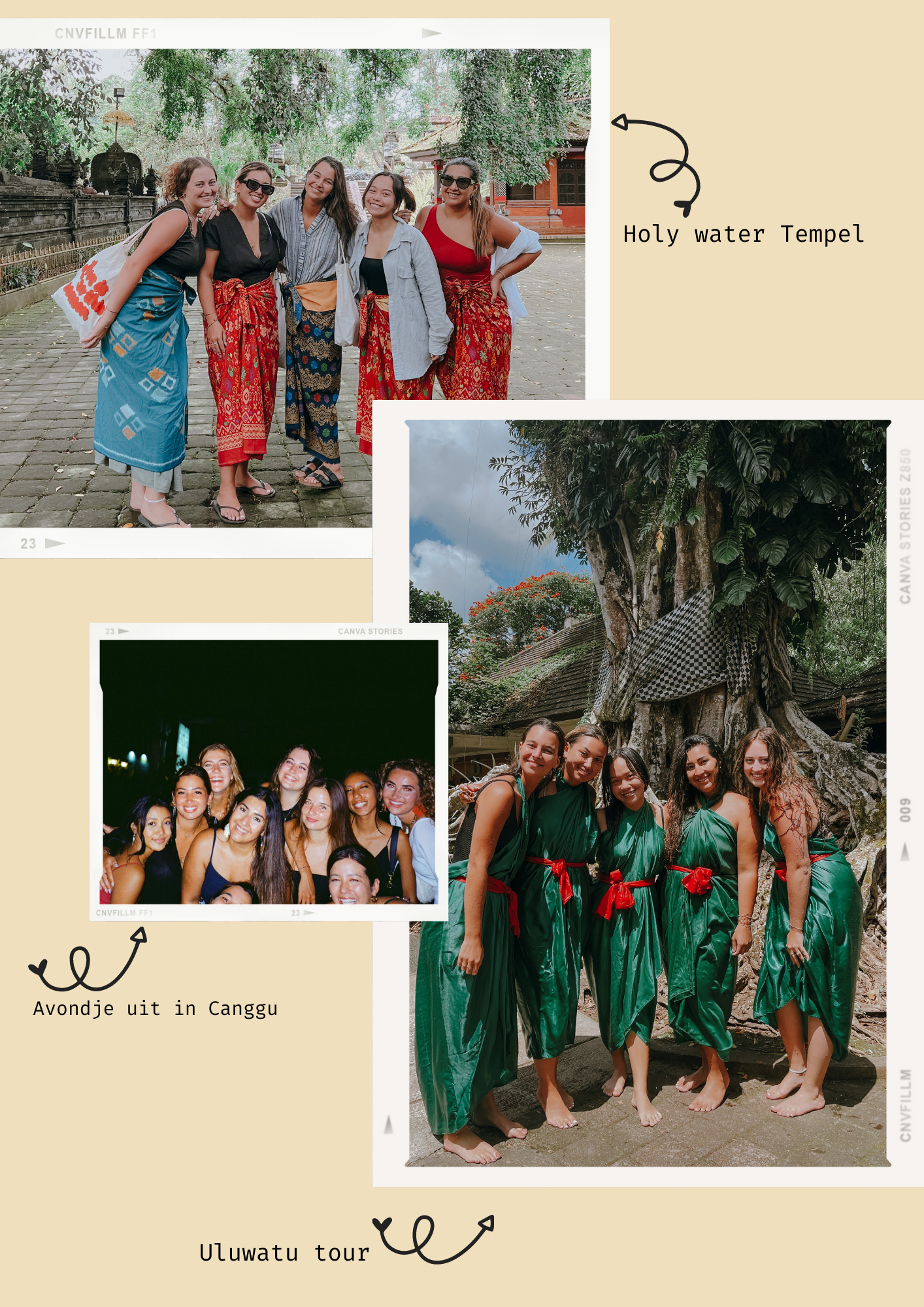 Vandaag is alweer de laatste volle dag op Bali. Je kan de laatste spulletjes kopen die je mee wilt nemen naar huis of toch nog voor een optionele activiteit kiezen. Wij vinden het leuk om de dag samen af te sluiten op het strand in Seminyak, waar we onder het genot van een kokosnoot, wat drankjes en hapjes (niet inbegrepen) de vakantie nog eens doornemen. Terwijl we de zonsondergang bekijken kunnen we ook terugkijken naar alle mooie herinneringen die we als groep hebben gemaakt. We hebben vrienden gemaakt en Bali doorgereisd, gelachen en avonturen beleefd. Iets om nooit te vergeten!